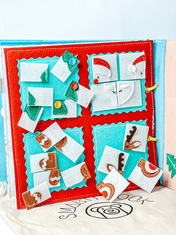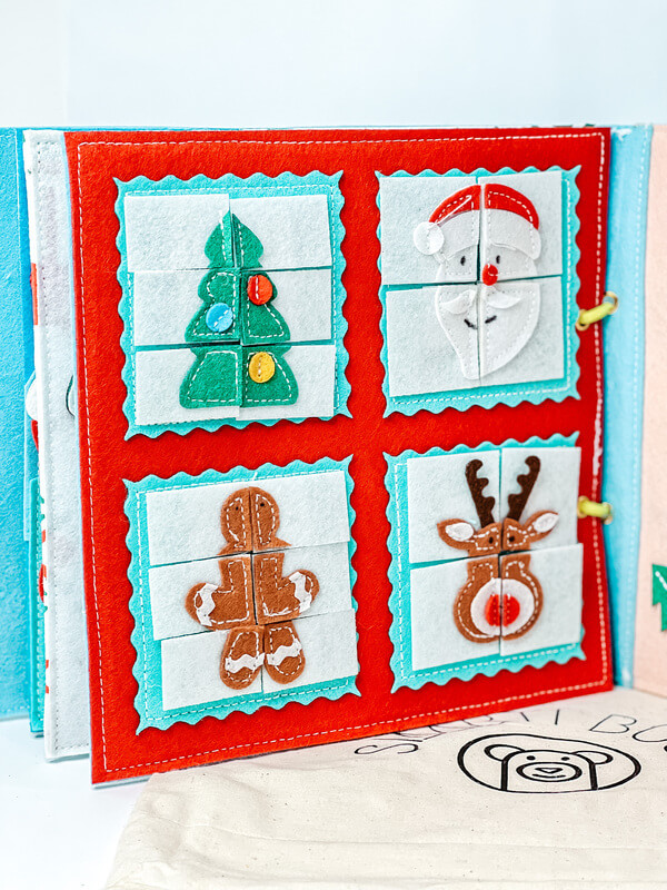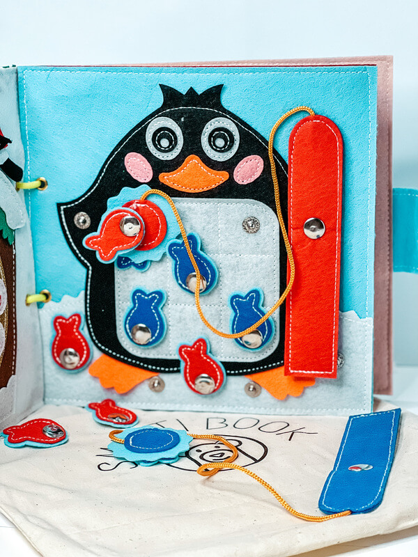 Cartea liniștită este făcută manual și educațional. Laturile sunt detașabile, le puteți rearanja după cum doriți sau le puteți împărți între frați.