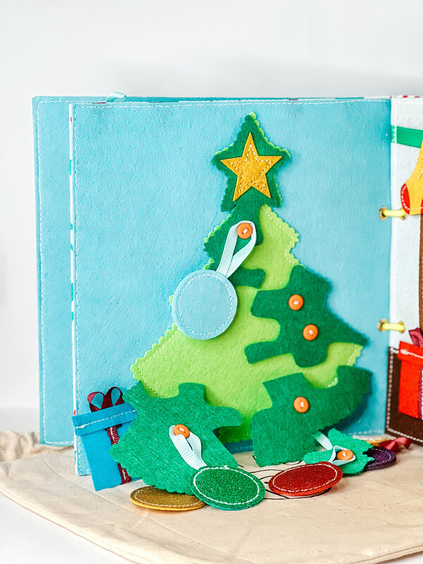 Construiți un brad de Crăciun: Asamblați puzzle-ul și veți obține un brad de Crăciun. Atârnă cu grijă decorațiunile pe nasturi și bradul este gata. De asemenea, puteți pune cadouri sub bradul de Crăciun. ciorapi si
