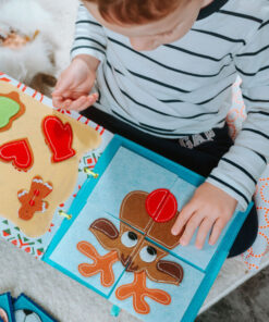 Cadouri: Agățați/ridicați fiecare șosetă cu pricepere. Câte perechi de șosete atârnă deasupra șemineului? Amestecă șosetele și joacă un mini joc de memorie cu un prieten. Găsiți perechile potrivite! Sortați cadourile sub șemineu de la cel mai mare la cel mai mic. Câte cadouri sunt sub șemineu? Fawn: Completează puzzle-ul și vei primi un cerb. Descrie ce vezi în imagine.