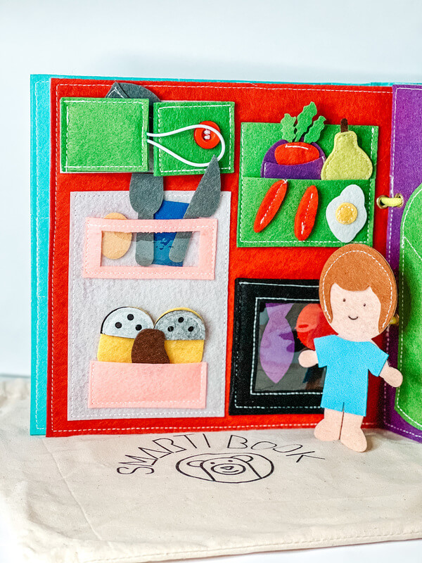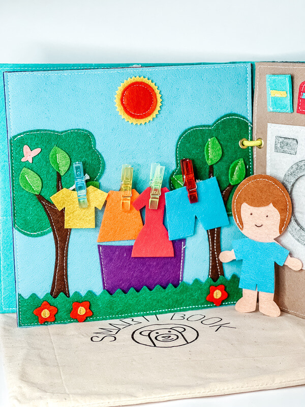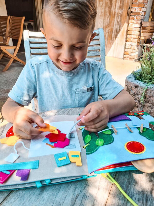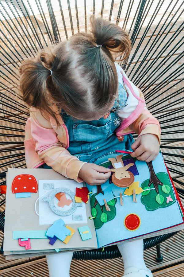 ✅ Abilități motorii fine: copiii își dezvoltă abilități precum folosirea degetelor și a mâinilor pentru a opera diverse elemente interactive, cum ar fi fermoare, nasturi, șireturi etc. în Quiet Book.