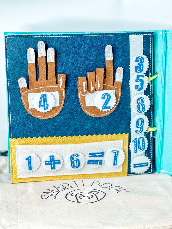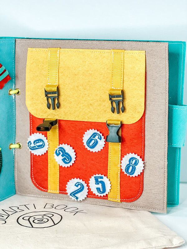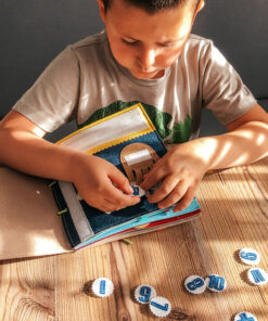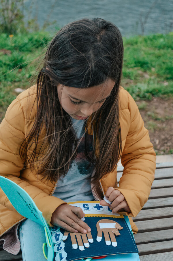 Conține 9 pagini de activități. Potrivit pentru copiii cu vârsta de 4 ani și peste, deoarece oferă numeroase activități preșcolare pentru a ajuta copilul la sarcini literare. Prin joc, copilul își va întări abilitățile motorii fine, ceea ce va ajuta la învățarea scrisului. De asemenea, își vor dezvolta vocabularul prin diverse subiecte precum treburile casnice, mâncarea și băutura. O activitate populară în rândul copiilor este cea care implică degete, numere și simboluri numerice, prin care fiecare copil învață să adună și să scadă până la 10 într-un mod concret. Toate numerele pot fi apoi păstrate ordonat în rucsacul școlii de pe pagina anterioară. Cartea liniștită este realizată manual și proiectată educațional. Paginile sunt detașabile, le puteți rearanja după cum doriți sau le puteți împărți între frați.