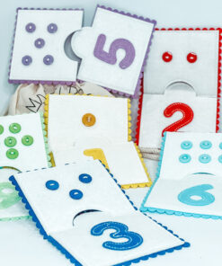 Găsirea perechilor de numere: Cereți copilului să simtă butoanele și să le numere. Apoi ar trebui să găsească același număr pe cealaltă jumătate a puzzle-ului. După ce ați pus cap la cap, verificați acuratețea rezultatului.