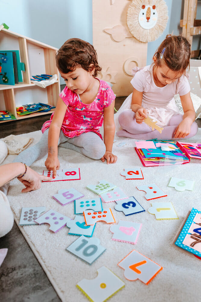 Adunare și scădere: Aranjați perechile de puzzle pe o suprafață. Apoi copilul va adăuga numere folosind butoanele de numărare. Este important să puneți împreună perechile adăugate și să indicați rezultatul. Repetați exercițiul de scădere și asigurați-vă că primul număr (minuend) este mai mare decât al doilea (subtraend).